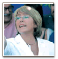 | เธอให้คำมั่นจะดำเนินนโยบายตามแบบอย่างของประธานาธิบดีริคาร์โด ลากอส ผู้นำหัวสังคมนิยม ซึ่งกำลังจะพ้น จากอำนาจ และได้รับการยกย่องในเรื่องการจัดเศรษฐกิจของประเทศจนกลายเป็นหนึ่ง ในชาติที่โดดเด่นของภูมิภาค |